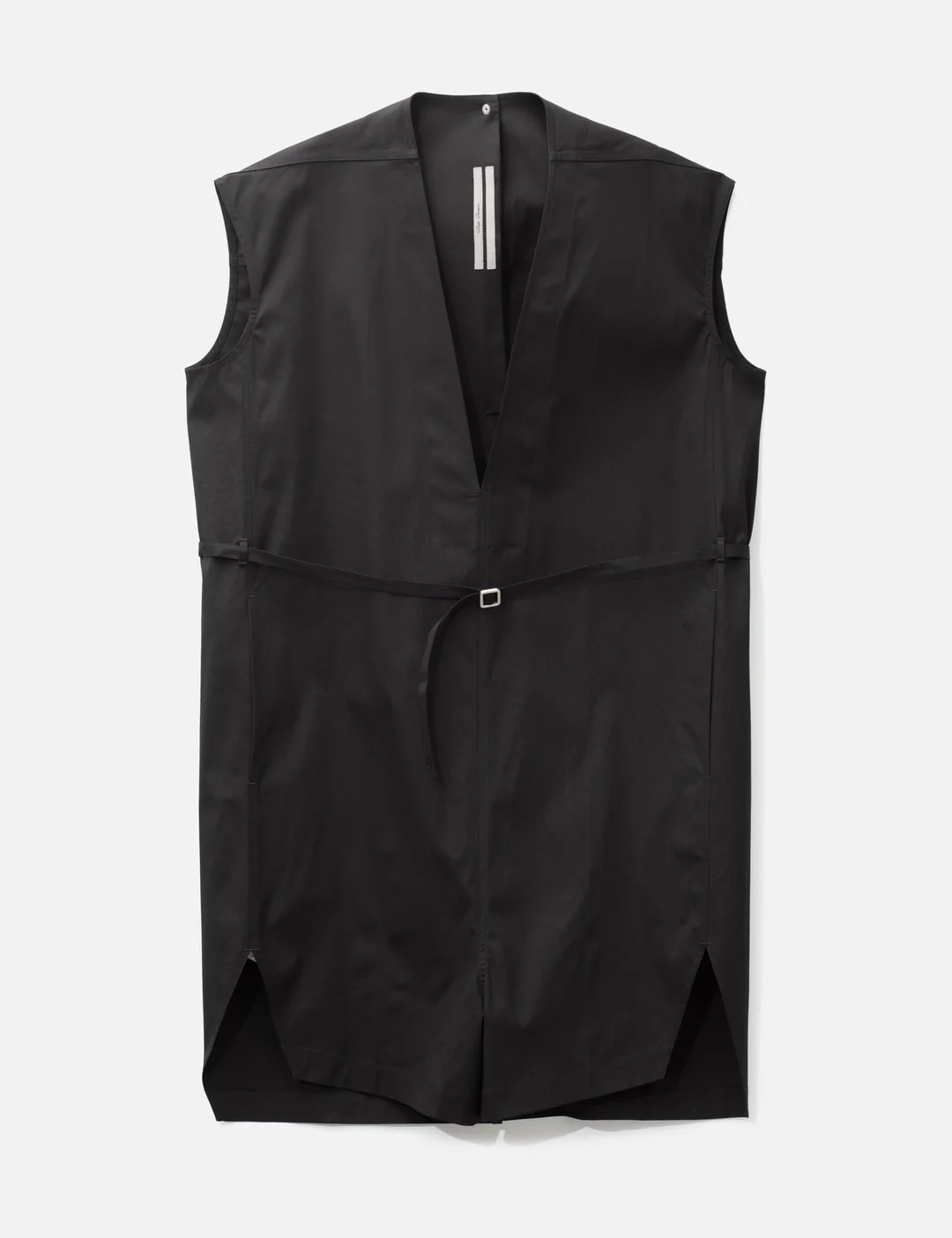 - Rick Owens - Short Sleeves Short Jumpsuit - Made of mediumweight cotton poplin - Knee length at front - Slightly longer at the back - Short, cap sleeves - Deep, dylan v neck - Thin buckled belt at waist - Beveled sides - Two side seam pockets - Top snap closure on the back collar - Made in Italy - Color: 09 Black - Material: 97% Cotton, 3% Elastane - See more Shorts and Clothing - Model wears size 48 - Model measures: Height 186cm, Chest 34”/86cm, Waist 28”/71cm, Hip 36”/91cm - Vendor Code: RU01F2550-TE