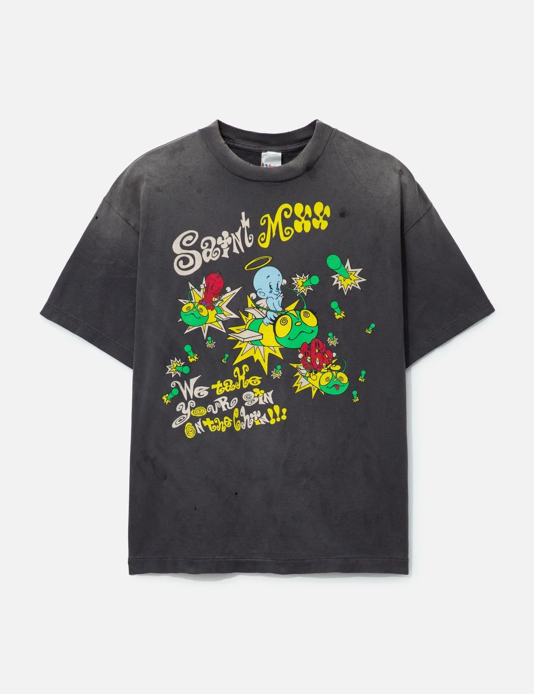 - Saint Michael - Saint Mx6 Short Shirt T-shirt - Made of premium cotton - Worn-in and distressed design - Ribbed crewneck - Short sleeves - Graphic prints on front and back - Made in Japan - Color: Black - Material: 100% Cotton - See more SS T-Shirts, T-Shirts and Clothing - Vendor Code: SM-HR8-0000-014