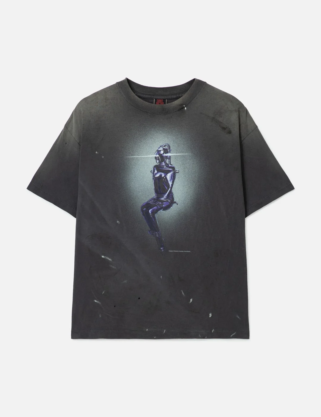 - Saint Michael - SAINT Mxxxxxx x Hajime Sorayama SRYM Mask T-shirt - SAINT Mxxxxxx x Hajime Sorayama collaboration - Made of premium cotton - Worn-in and distressed design - Ribbed crewneck - Short sleeves - Graphic print at front - Cobrand text print on back - Made in Japan - Color: Black - Material: 100% Polyester - See more T-Shirts and Clothing - Model wears size M - Model measures: Height 186cm, Chest 34”/86cm, Waist 28”/71cm, Hip 36”/91cm - Vendor Code: SM-HR1-0000-C75