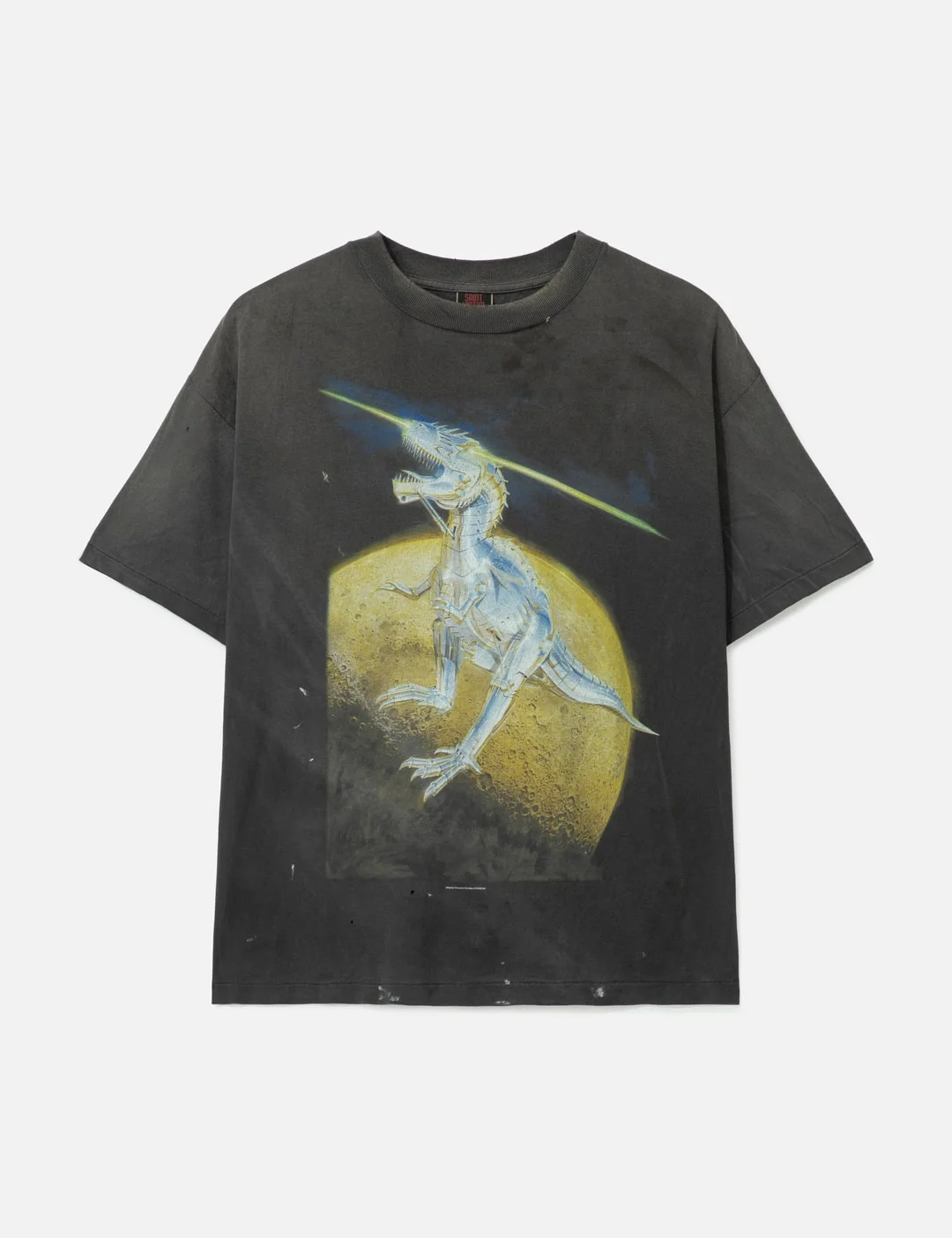 - Saint Michael - SAINT Mxxxxxx x Hajime Sorayama SRYM T-rex T-shirt - SAINT Mxxxxxx x Hajime Sorayama collaboration - Made of premium cotton - Worn-in and distressed design - Ribbed crewneck - Short sleeves - Graphic print at front - Cobrand text print on back - Made in Japan - Color: Black - Material: 100% Cotton - See more T-Shirts and Clothing - Model wears size M - Model measures: Height 186cm, Chest 34”/86cm, Waist 28”/71cm, Hip 36”/91cm - Vendor Code: SM-HR1-0000-C76