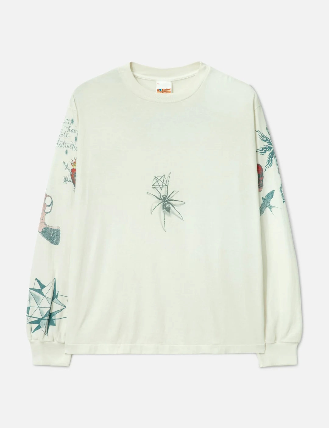 - Saint Michael - Tattoo DW Long Sleeve T-shirt - Made of premium cotton - Ribbed crewneck - Long sleeves - Tattoo motif graphic print at front, sleeves, and back - Made in Japan - Color: White - Material: 100% Cotton - See more T-Shirts and Clothing - Model wears size M - Model measures: Height 186cm, Chest 34”/86cm, Waist 28”/71cm, Hip 36”/91cm - Vendor Code: SM-HR1-0000-C29