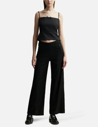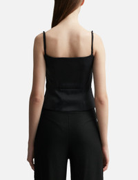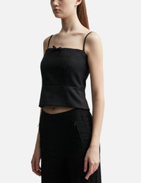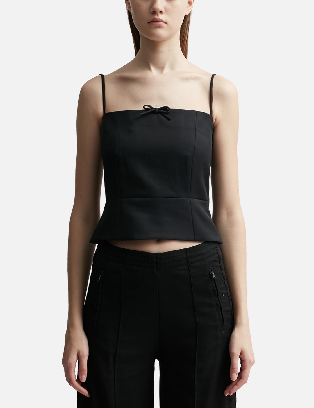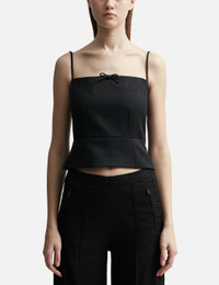 - Sandy Liang - Hunter Top - Corset-like fitted top - Side zip fastening - Concealed pocket at rear - Color: Black - Material: 55% Polyester, 45% Wool - See more Tops and Clothing SIZING - Model wears size 2 - Model measures: Height 180cm, Chest 33’’/84cm, Waist 23’’/58.42cm, Hip 36’’/91cm