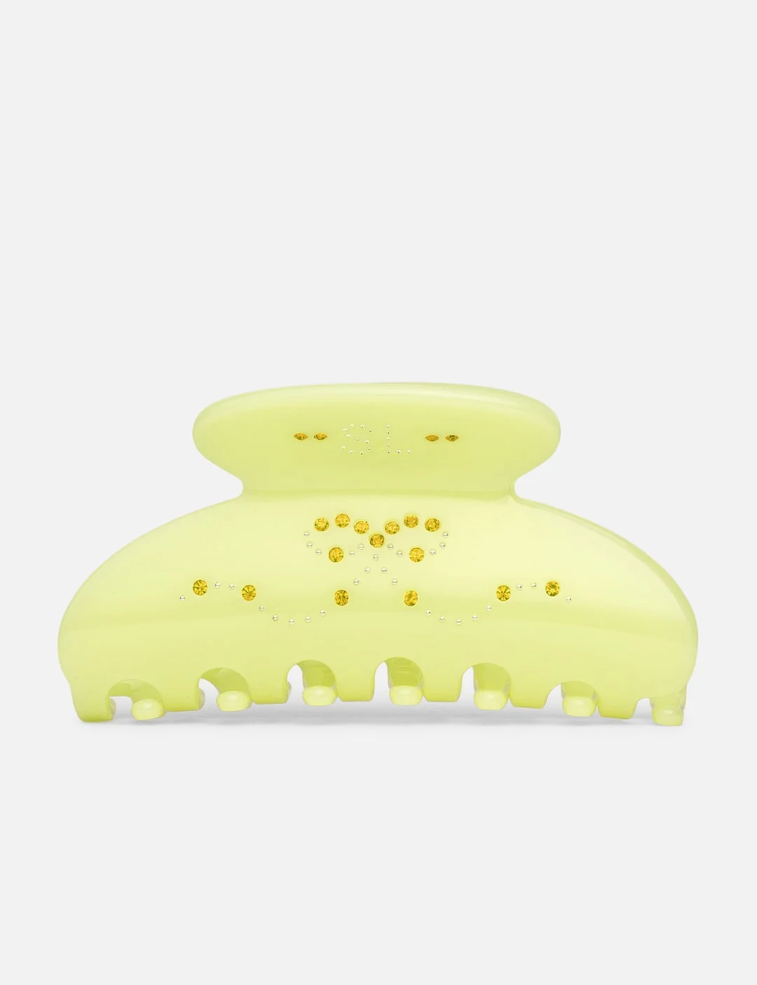 - Sandy Liang - Princess Hair Claw - Made of glossy acetate - Round edges - Rhinestone embellishments in a ribbon motif - Beaded SL logo at the top edge - Color: Lemon - Material: 100% Acetate - See more Jewelry and Accessories - 5 × 9cm - Vendor Code: H25A029-O001