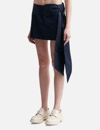 - Sandy Liang - Skar Skirt - Sport nylon fabric with a glossy finish - Rear zip closure - Oversized bow details on the side - Fully lined - Mini-length - Color: Navy - Material: 100% Nylon - See more Skirts and Clothing SIZING - Model wears size US 2 - Model measures: Height 177cm, Chest 32”/81cm, Waist 23.5”/59.7cm, Hip 33’’/83.8cm