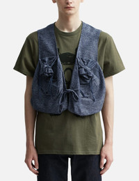 - Sasquatchfabrix. - Drawstring Pk Vest - Piece-dyed leno woven polyester and cotton fabric - Sleeveless - Gathered design on the chest - Two snapped pockets on the front - Tie closure - Color: Ash Navy - Material: 70% Polyester, 30% Cotton - See more Vests and Clothing SIZING - Model wears size L - Model measures: Height 187cm, Chest 36”/91cm, Waist 29”/74cm, Hip 37”/94cm