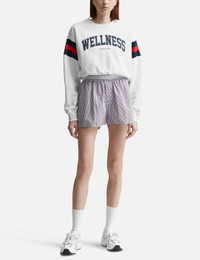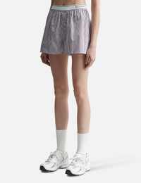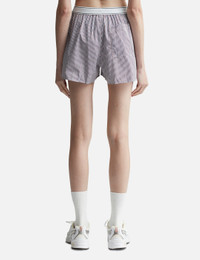 - Sporty & Rich - Serif Logo Boxer Shorts - Made of cotton poplin - Branded elastic waistband - Buttoned fly - Single back pocket - Made in Portugal - Color: White/ Red/ Navy Stripe - Material: 100% Cotton - See more Shorts and Clothing SIZING - Model wears size M - Model measures: Height 177cm, Chest 32"/81cm, Waist 23.5"/59.7cm, Hip 33’’/83.8cm