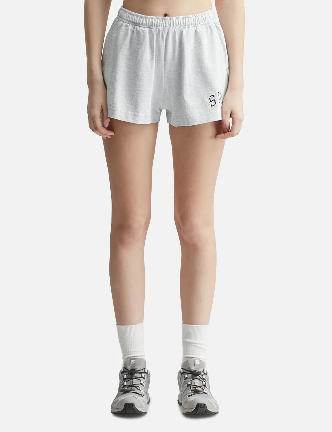 - Sporty & Rich - S&R Ivy Disco Short - Made of 9oz cotton - Pre-shrunk - Garment-dyed finish - Elasticated waistband - Two side pockets - One rear patch pocket - Logo embroidery above left hem - Made in the USA - Color: Heather Gray / Navy - Material: 100% Cotton - See more Shorts and Clothing - Model wears size S - Model measures: Height 177cm, Chest 30.5’’/77.5cm, Waist 25.5’’/65cm, Hip 35’’/89cm - Vendor Code: S&R Ivy Disco Short