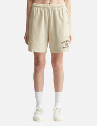 - Sporty & Rich - Varsity Crest Gym Shorts - Shrink free - Garment dyed - Elastic waistband with drawstring - Logo design printed at hem - Single back pocket - Color: Cream/Chocolate - Material: 100% Cotton - See more Shorts and Clothing SIZING - Model wears size M - Model measures: Height 175cm, Chest 32’/81cm, Waist 24.5’’/61.2cm, Hip 35’’/88.9cm