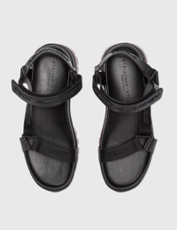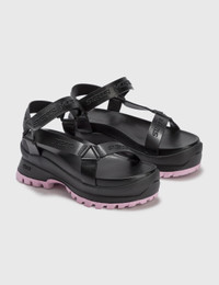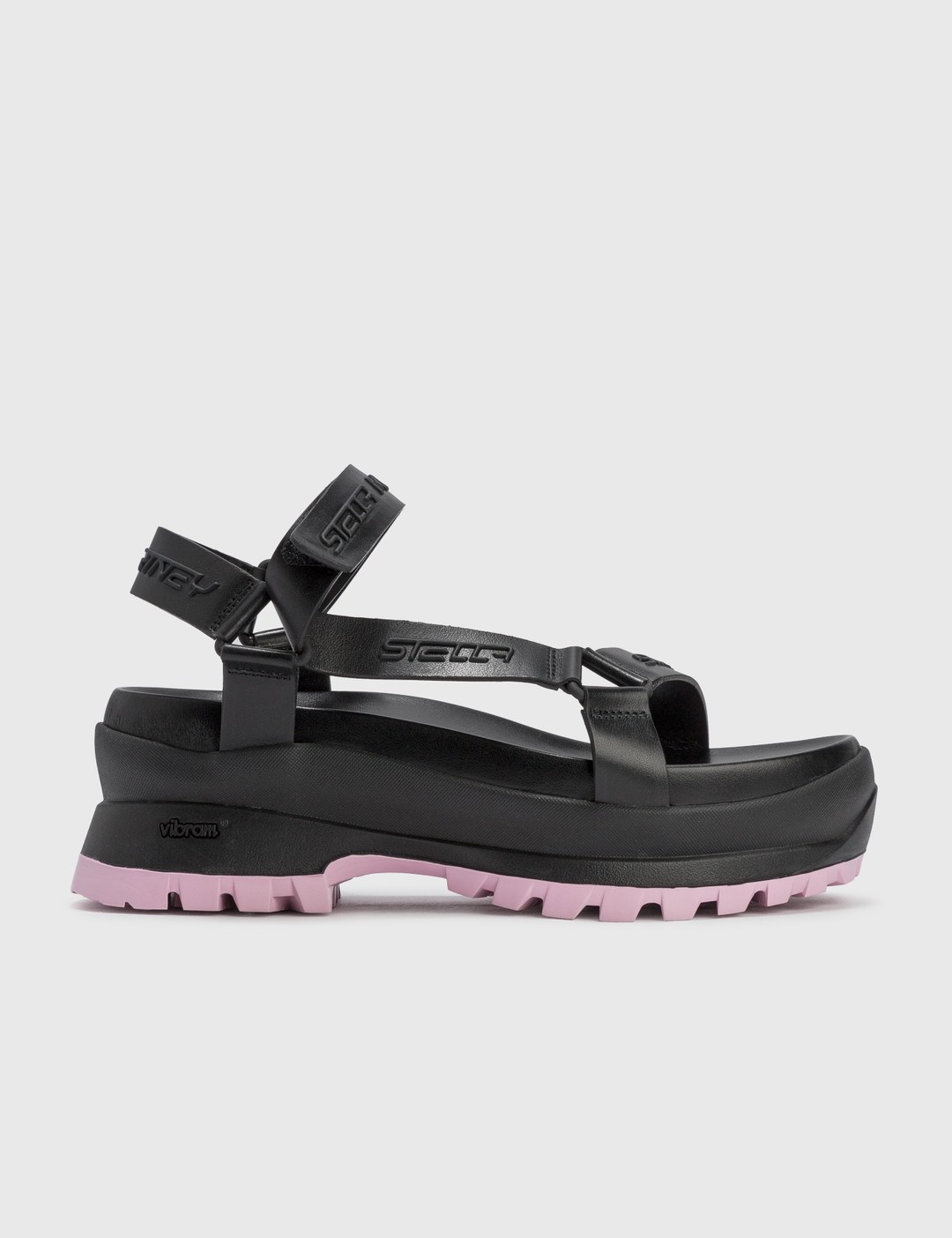 - Stella McCartney - Trace Strap Sandals - Made with cruelty-free, non-leather materials - Branded hook and loop closure - Branded insole - Contrasting lilac accents at sole - Vibram platform sole - Color: Black - Material: Polyester, PU, Rubber - See more Sandals and Shoes