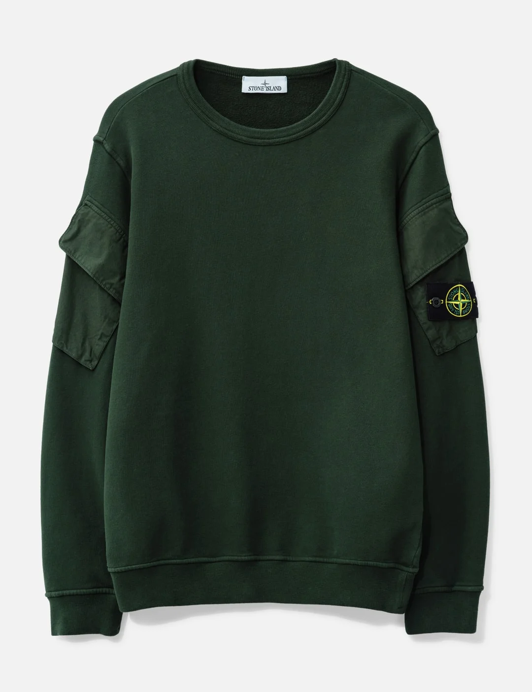 - Stone Island - Brushed Organic Cotton Fleece Sweatshirt - Regular-fit - Made of organic cotton - Garment dyed - Crewneck - Long sleeves - Bellows pocket with two snaps under flap on sleeves - Stone Island badge on left sleeve pocket - Ribbed collar, cuffs and hem - Color: Juniper - Material: 100% Cotton - See more Sweatshirts and Clothing - Model wears size M - Model measures: Height 186cm, Chest 34”/86cm, Waist 28”/71cm, Hip 36”/91cm - Vendor Code: S15 6100008 S0A20