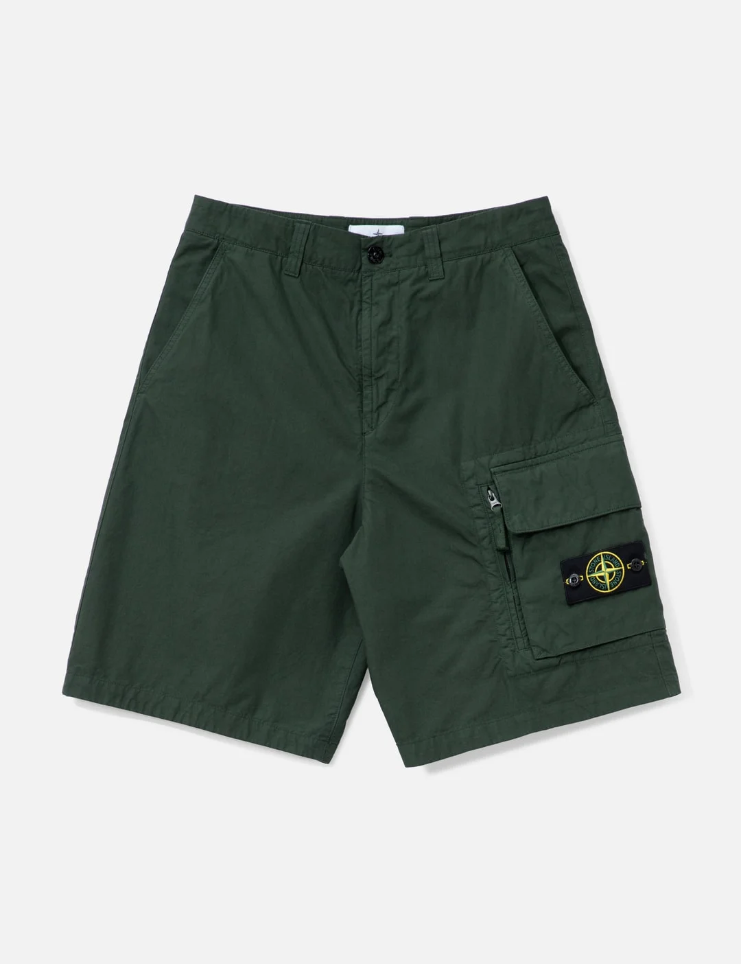 - Stone Island - Canvas Weave Cotton Shorts - Regular fit - Made of cotton, elastane and spandex - Zip and button fly - Garment dyed - Standing hand pockets - Cargo pocket with Stone Island badge at left side - Zipper pocket - One back pocket with snap - Made in Romania - Color: V005E - Material: 100% Cotton - See more Shorts and Clothing - Model wears size M - Model measures: Height 186cm, Chest 34”/86cm, Waist 28”/71cm, Hip 36”/91cm - Vendor Code: S15 L100003 S0179