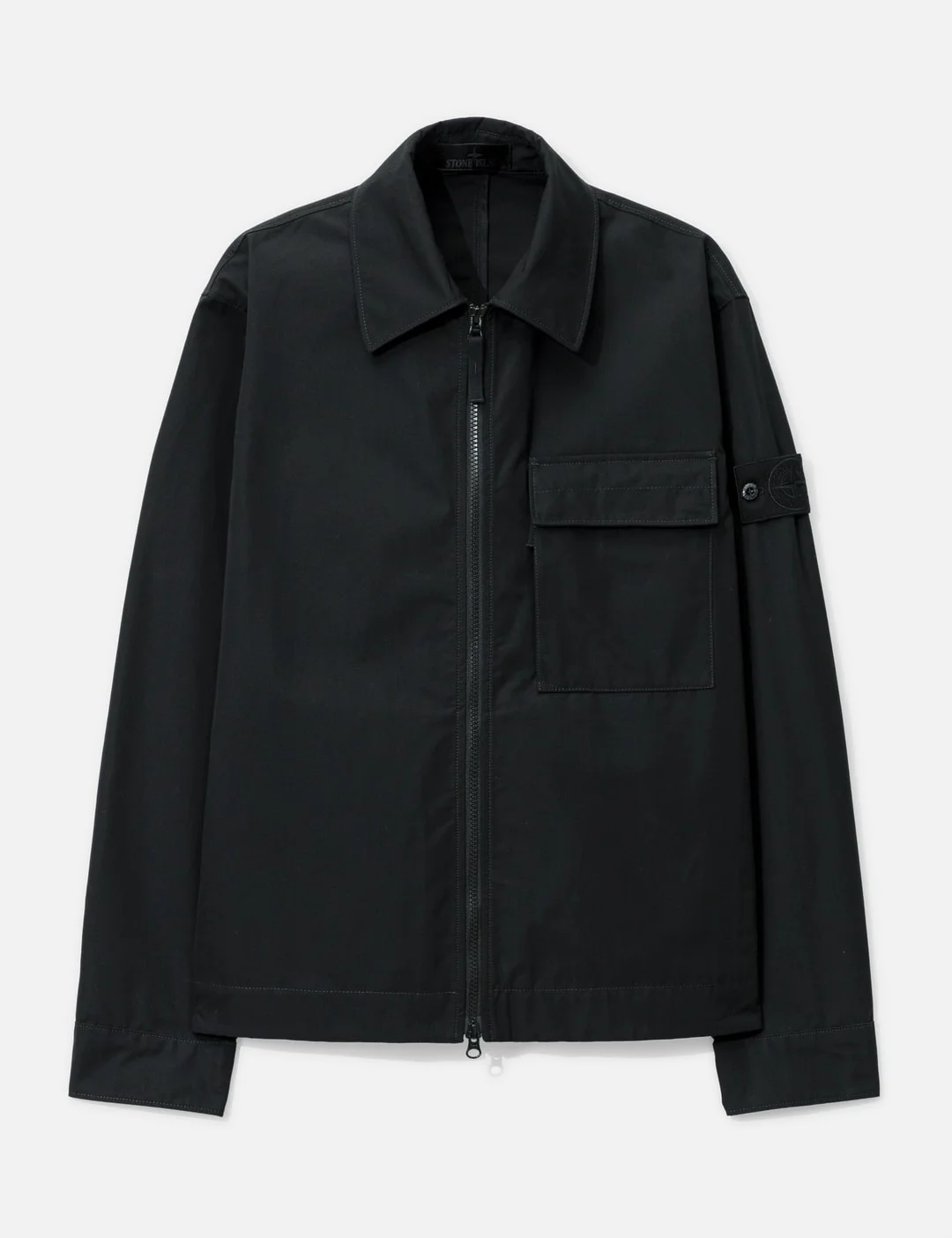 - Stone Island - Cotton Canvas Stone Island Ghost Overshirt - Made of organic cotton - Zip closure - Two chest pockets - One bellows pocket with flap and button - Other with vertical entrance and zipper - Ghost Stone Island badge at left sleeve - On-seam hand pockets - Inner pocket with top entrance - Tightening snap at cuffs - Adjusatbel hem with snap buttons - Color: Black - Material: 100% Cotton - See more Shirts and Clothing - Model wears size M - Model measures: Height 186cm, Chest 34”/86cm, Waist 28”/71cm, Hip 36”/91cm - Vendor Code: S15 1200018 S00F1