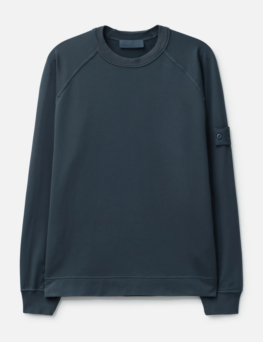 - Stone Island - Cotton Stretch Fleece Ghost Shirt - Regular fit - Made of organic cotton fleece - Lightweight - Garment dyed - Ribbed crewneck and cuffs - Raglan sleeves - Monotone Stone Island Ghost badge on left sleeve - Color: V002E - Slate Blue - Material: 95% Cotton, 5% Elastane; Ribbing: 96% Cotton, 4% Elastane/Spandex - See more Sweatshirts and Clothing - Model wears size M - Model measures: Height 186cm, Chest 34”/86cm, Waist 28”/71cm, Hip 36”/91cm - Vendor Code: S15 6100064 S00F3