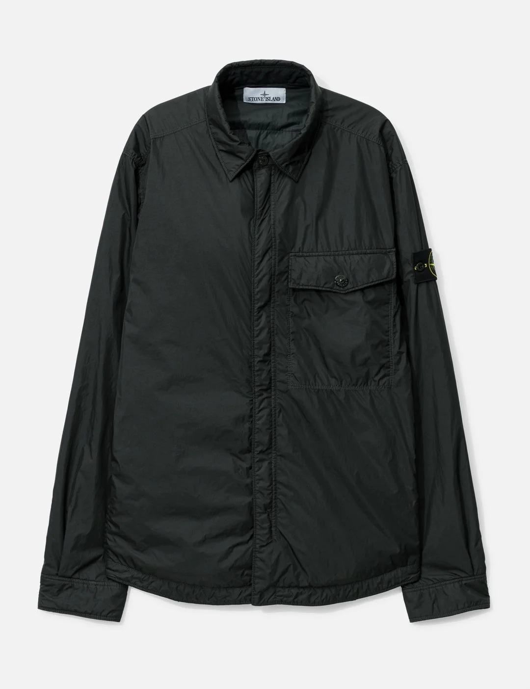 - Stone Island - Crinkle Reps Shirt Jacket - Inner resin coating - Anti-drop finish - Garment Dyed - Concealed zipper closure - Chest pocket with snap - One inner pocket - Stone Island fabric research badge on left sleeve - Padded with PRIMALOFT®-TC - Color: Black - Material: 100% Polyamide; 100% Polyyurethanic Resin; 100% Polyamide - See more Jackets and Clothing - Model wears size M - Model measures: Height 186cm, Chest 34”/86cm, Waist 28”/71cm, Hip 36”/91cm - Vendor Code: S15 Q100006 S0A23