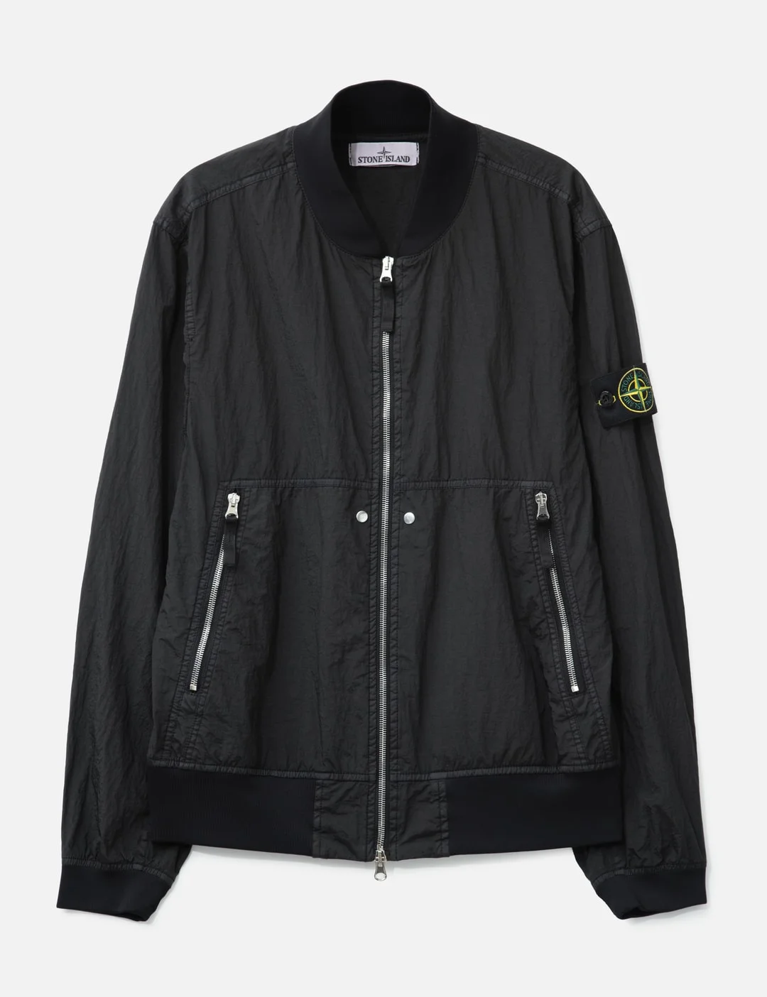 - Stone Island - Nylon Metal Bomber Jacket - Made of ECONYL® regenerated nylon yarns - Metallic and tonic sheen finish - Resin-treated for mild wind and water-resistant properties - Zip closure - Ribbed collar, cuffs, and hem - Two front pockets - Color: Black - Material: 100% Polyamide - See more Bomber Jackets, Jackets and Clothing - Model wears size M - Model measures: Height 186cm, Chest 34”/86cm, Waist 28”/71cm, Hip 36”/91cm - Vendor Code: S15 4100019 S0020