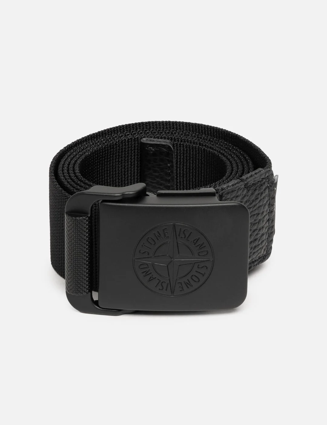 - Stone Island - Nylon Tape Belt - Nylon webbing belt - Tonal metal buckle with embossed Stone Island logo - Leather accents - Color: Black - Material: Belt: 100% Polyamide; Leather Details: 100% Cowhide - See more Belts and Accessories - CM 90 - Width: 4cm - Max. Length: 104cm - Belt Buckle Length: 7cm - Belt Buckle Width: 5cm - CM 100 - Width: 4cm - Max. Length: 114cm - Belt Buckle Length: 7cm - Belt Buckle Width: 5cm - CM 110 - Width: 4cm - Max. Length: 123cm - Belt Buckle Length: 7cm - Belt Buckle Width: 5cm - Vendor Code: S15 9300001 S0073