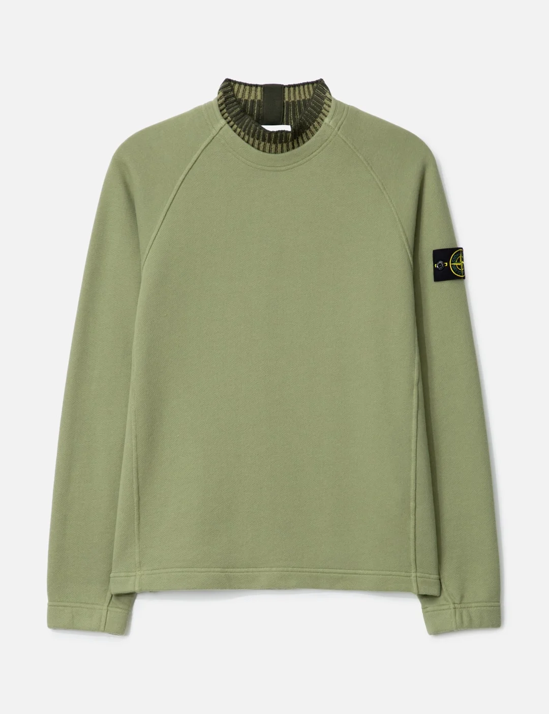 - Stone Island - Organic Cotton Diagonal Fleece Crewneck Sweatshirt - Made of organic cotton fleece - Regular fit - Garment-dyed - Crewneck with ribbed knit detail - Raglan sleeves - Stone Island badge on left sleeve - Straight hem - Color: Sage Green - Material: 100% Cotton; Collar: 48% Virgin Wool, 43% Cotton, 8% Polyamide, 1% Elastane - See more Sweatshirts and Clothing - Model wears size M - Model measures: Height 186cm, Chest 34”/86cm, Waist 28”/71cm, Hip 36”/91cm - Vendor Code: S15 6100081 S0185