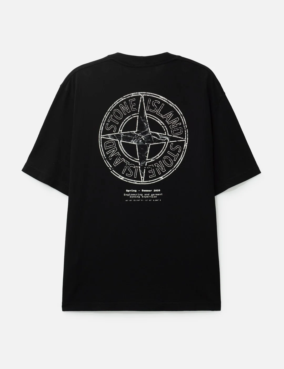 - Stone Island - Organic Cotton Jersey T-shirt - Regular fit - Garment dyed - Ribbed crewneck - Short sleeve - ‘Stone’ print - Large Compass logo print with aged effect and text on back - Color: Black - Material: 100% Cotton - See more SS T-Shirts, T-Shirts and Clothing - Model wears size M - Model measures: Height 187cm, Chest 35.4”/90cm, Waist 27”/69cm, Hip 36”/91cm - Vendor Code: S15 2100001 S0285