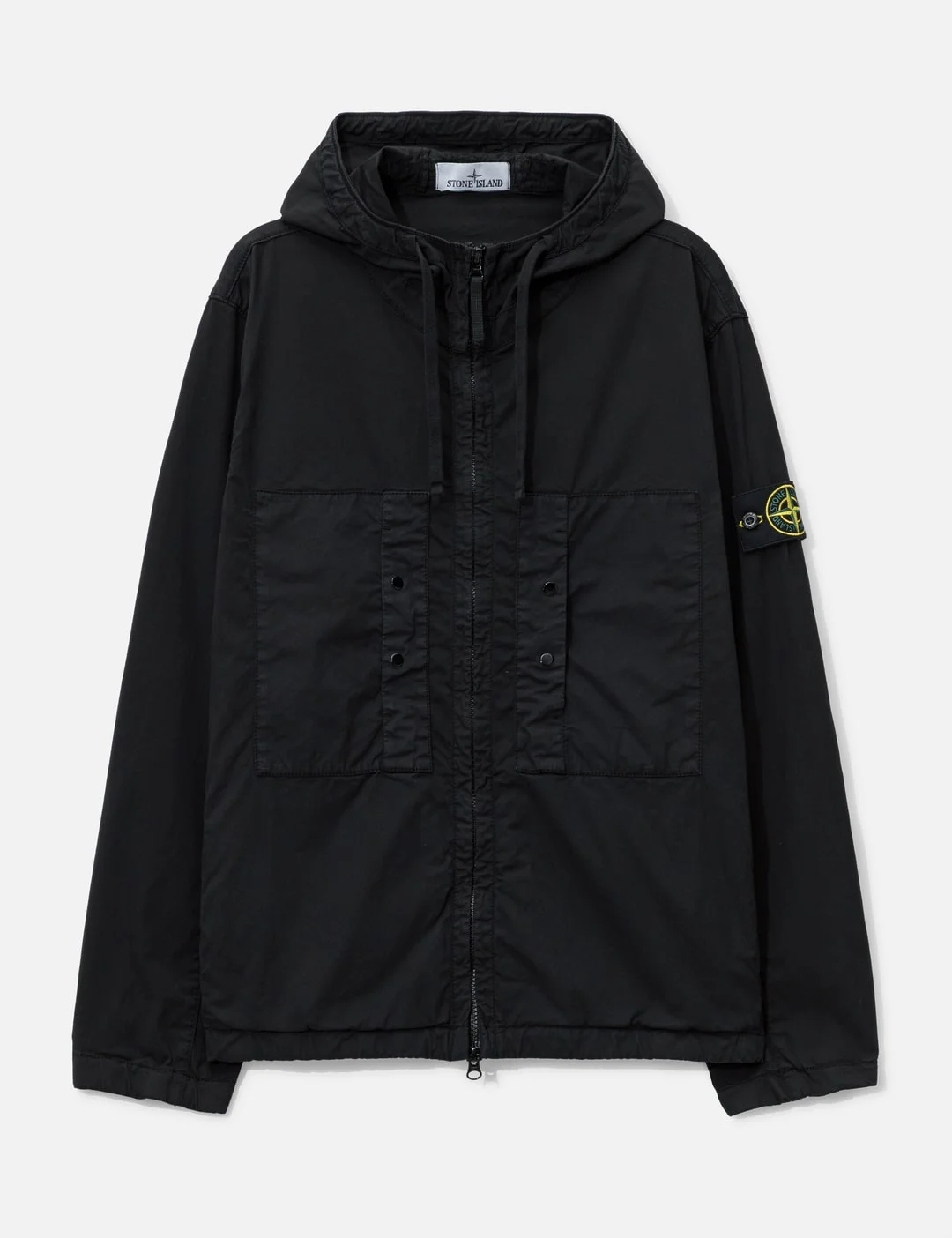 - Stone Island - Supima® Cotton Hooded Jacket - Garment-dyed - Drawcord hood - Zip closure - Two chest pockets; two side pockets - Stone Island badge at sleeve - Snap-button cuffs - Elastic hem - Unlined - Color: Black - Material: 97% Cotton, 3% Elastane - See more Jackets and Clothing - Model wears size M - Model measures: Height 186cm, Chest 34”/86cm, Waist 28”/71cm, Hip 36”/91cm - Vendor Code: S15 4100091 S0010
