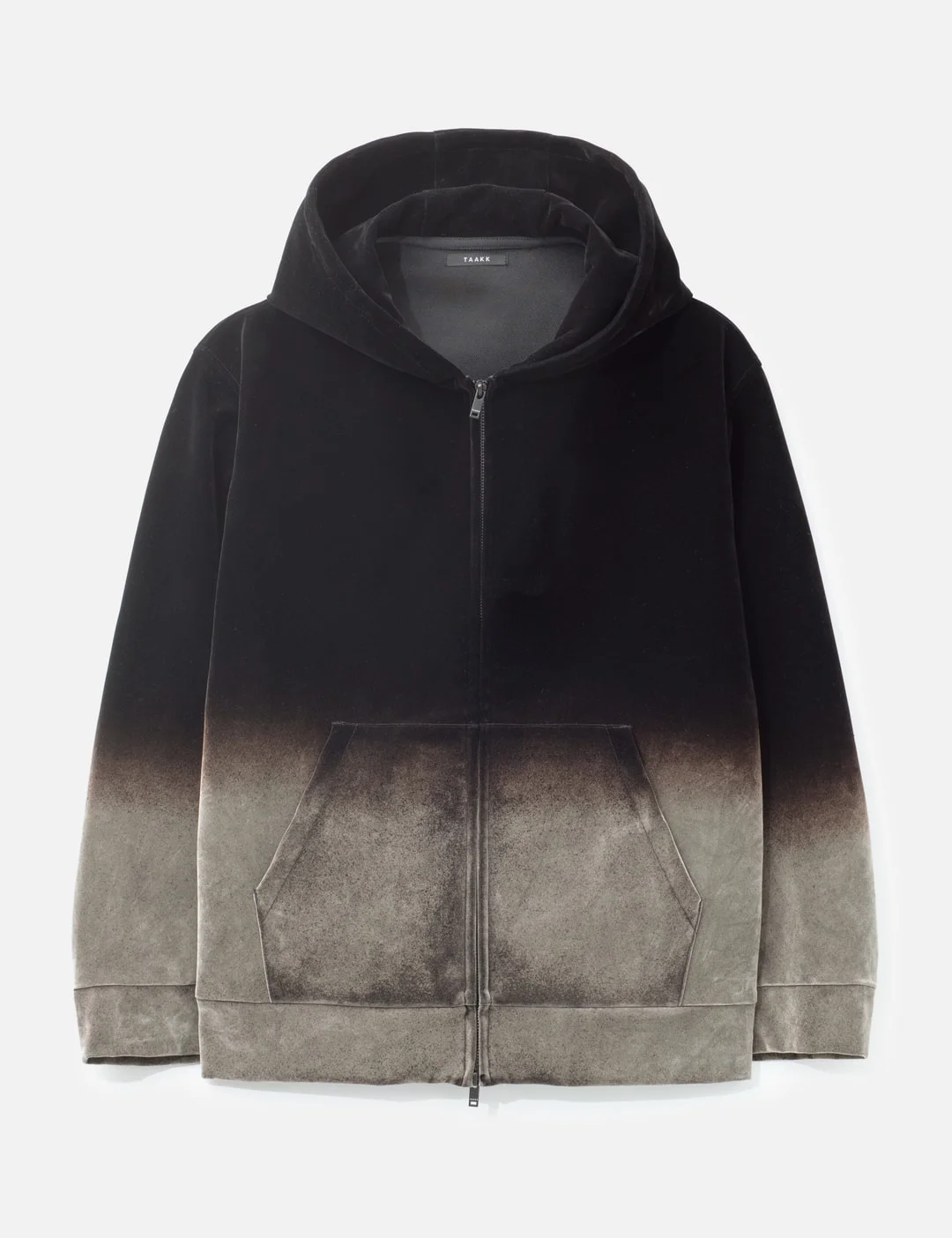 - TAAKK - Gradation Pile Hoodie - Custom polyester exterior with velvety finish - Gradient dyeing - Relaxed fit - Dropped shoulders - Fixed hood - Two-way front zip closure - Long sleeves - Front kangaroo pockets - Straight hem - Color: Black - Material: 100% Polyester - See more Hoodies and Clothing - Model wears size 2 - Model measures: Height 186cm, Chest 34”/86cm, Waist 28”/71cm, Hip 36”/91cm - Vendor Code: TA25AW-BL009