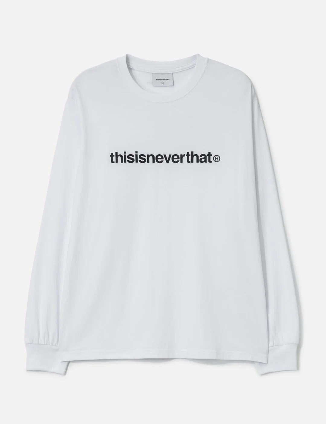 - thisisneverthat® - T-Logo Long Sleeve T-Shirt - Made of 210gsm cotton jersey - Garment-washed - Regular fit - Crewneck - Long sleeves - Logo print on front and back - Ribbed collar and cuffs - Straight hem - Color: White - Material: 100% Cotton - See more LS T-Shirts, T-Shirts and Clothing - Model wears size M - Model measures: Height 186cm, Chest 34”/86cm, Waist 28”/71cm, Hip 36”/91cm - Vendor Code: TN250TTSLT01