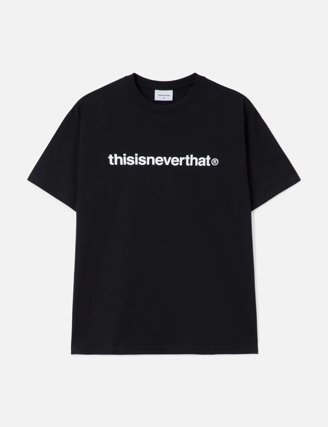- thisisneverthat® - T-Logo T-Shirt - Made of 210gsm cotton jersey - Garment-washed - Regular fit - Ribbed crewneck - Short sleeves - Logo print on front and back - Straight hem - Color: Black - Material: 100% Cotton - See more SS T-Shirts, T-Shirts and Clothing - Model wears size M - Model measures: Height 186cm, Chest 34”/86cm, Waist 28”/71cm, Hip 36”/91cm - Vendor Code: TNCO0TTSST07