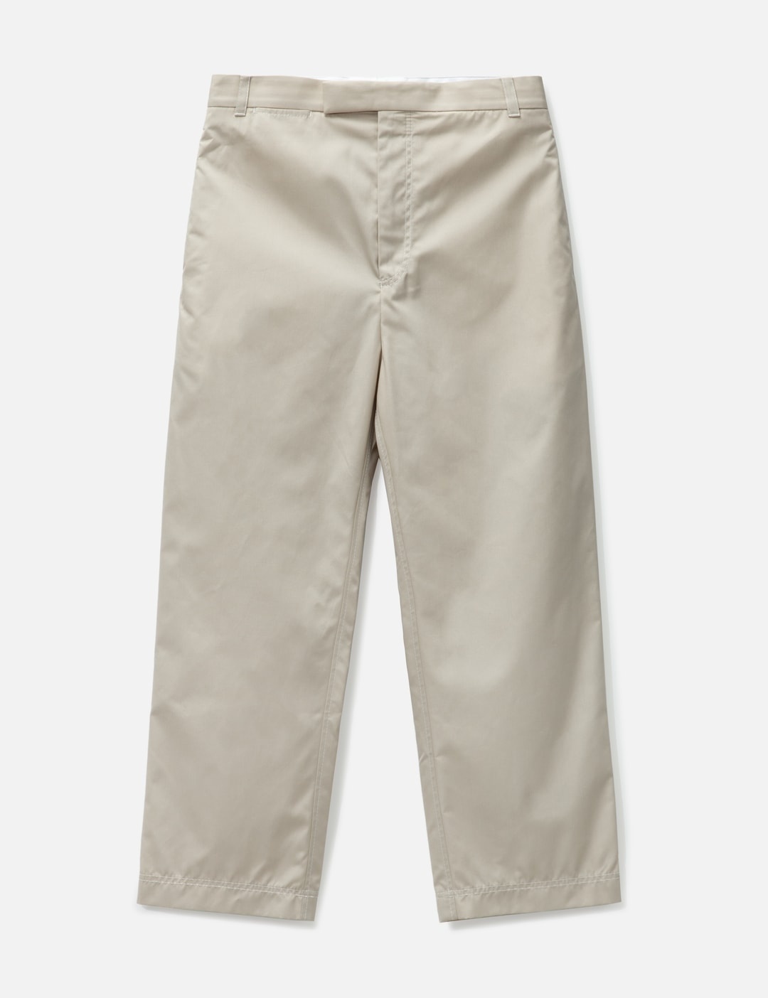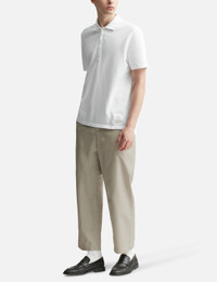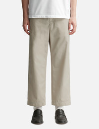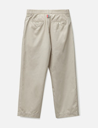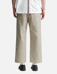 - Thom Browne - Typewriter Straight Leg Trouser - Polyester-cotton blend fabric - Two side pockets; two rear pockets - Straight leg, cropped length - Color: Khaki - Material: 65% Polyester, 35% Cotton - See more Pants and Clothing SIZING - Model wears size 2 - Model measures: Height 188cm, Chest 36"/92cm, Waist 30"/76cm, Hip 37"/94cm