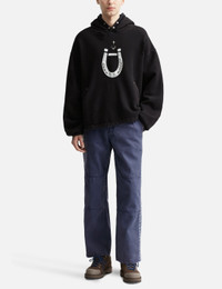 - THUG CLUB - Hoof Hoodie - Thug Club x Dickies collaborative collection - Heavyweight cotton fabric - TC emblem at chest - Thug Club x Dickies collaborative collection - Distressed details throughout - Two front pockets - Elasticated cuffs - Elasticated hem with drawcords - Loopback lining - Color: Black - Country Of Origin: KR - Material: 100% Cotton - See more Hoodies and Clothing SIZING - Model wears size 2 - Model measures: Height 186cm, Chest 34”/86cm, Waist 28”/71cm, Hip 36”/91cm