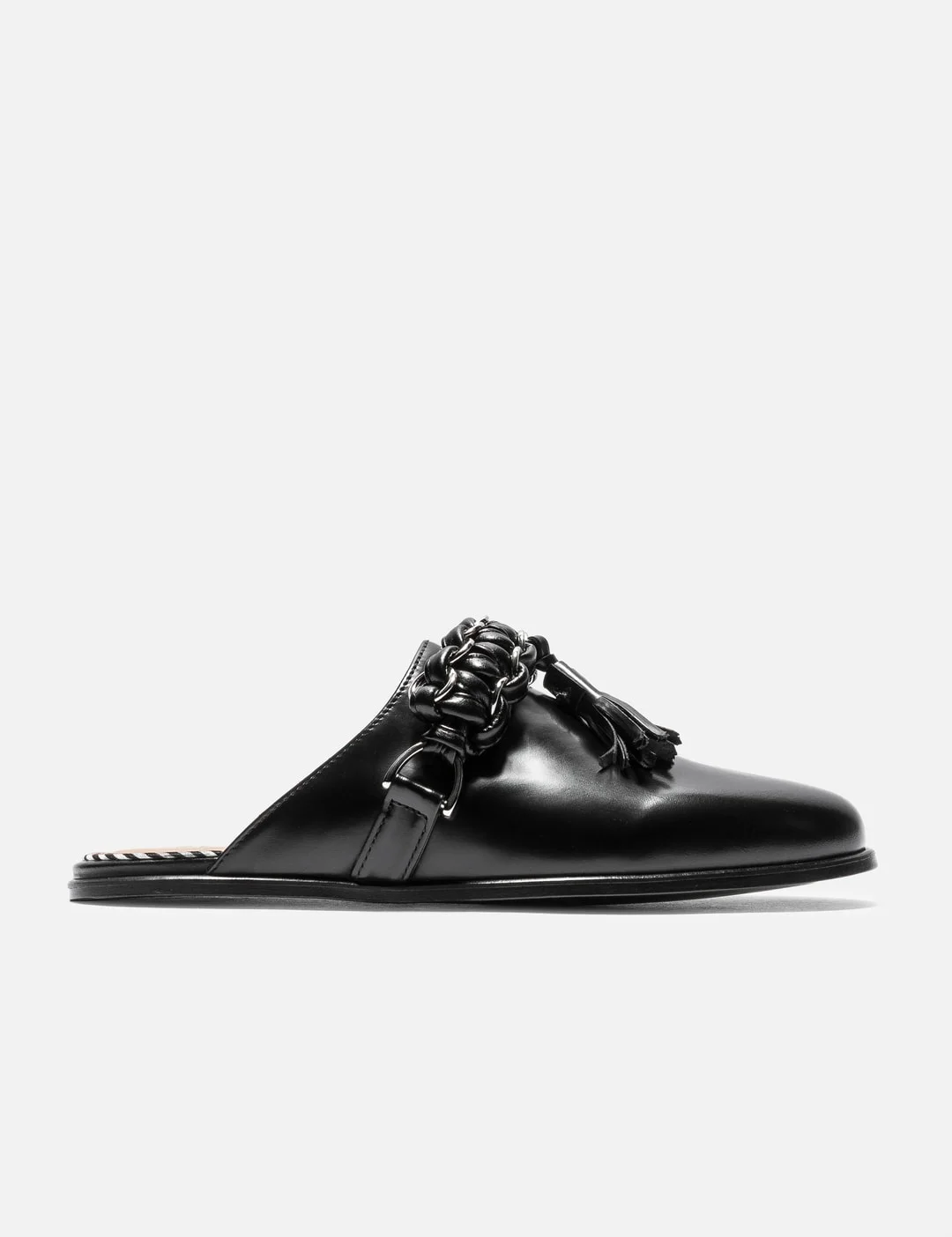 - Toga Pulla - Tassel Braid Mules - Cowhide upper - Slip-on - Braided strap and charm details - Cowhide sole - Flat rubber outsole - Color: Black Polido - Material: Cowhide, Rubber, Alloy - See more Casual Shoes and Shoes - Vendor Code: FTGPW144009021