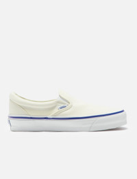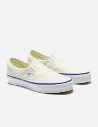 - Vans - Slip-On Reissue 98 - Slip-on - 8 oz. canvas upper - Full grain leather collar lining - Woven flag label - Higher sidewall with gloss finish - Foxing tape with original 90's Osnaburg reinforcement - Sola Foam All-Day-Comfort (ADC), anti-fatigue, 30% bio-based material - Color: Lx Off White - Material: Canvas; Leather: Rubber - See more Sneakers and Shoes