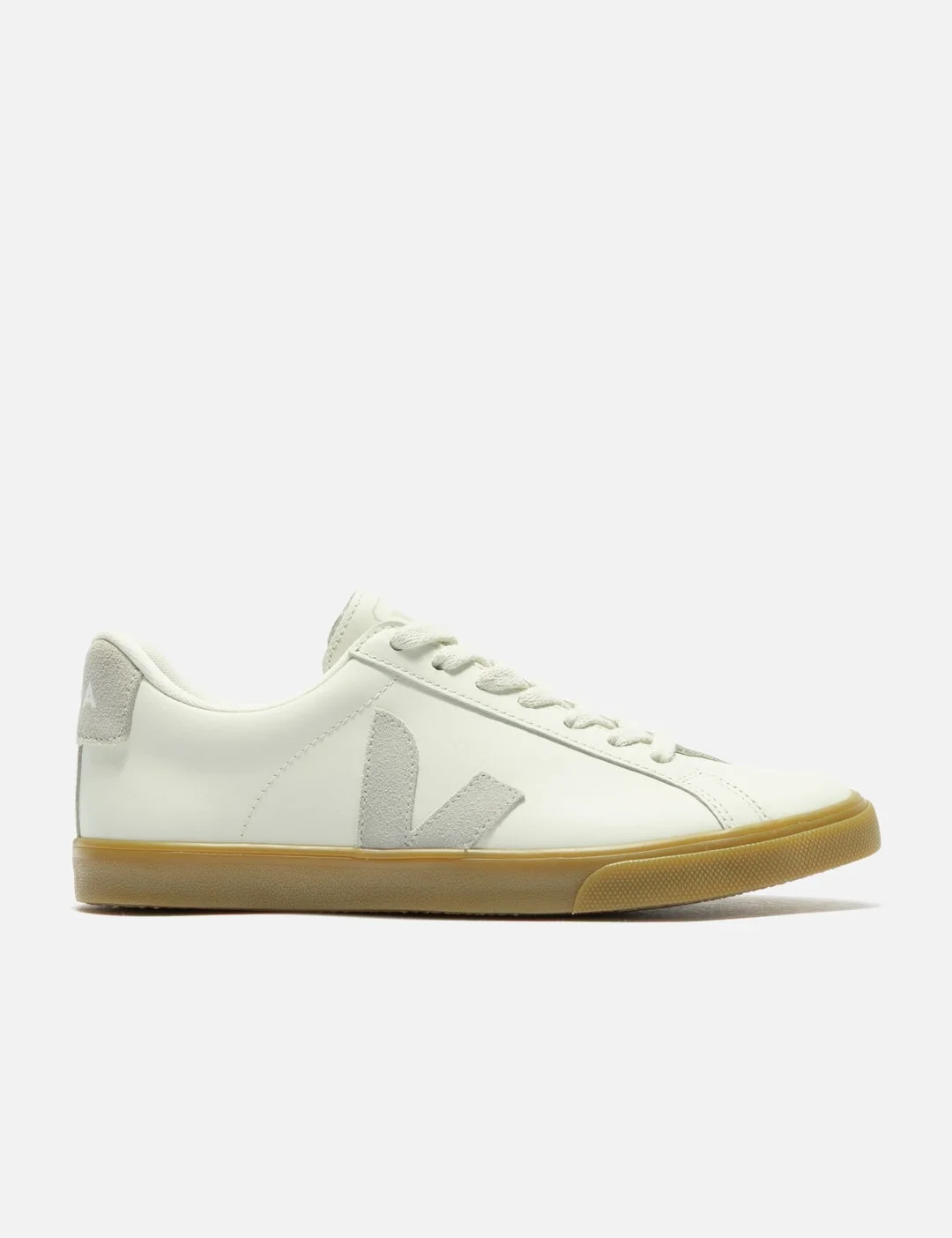 - Veja - Esplar - Low-top sneaker - Round toe - Lace-up closure - Bovine leather upper - Signature V logo on the sides - Padded suede collar with logo - Recycled polyester lining - Rubber outsole - Organic cotton laces - Color: Pure / Natural - Material: Leather, Suede, Rubber, Polyester - See more Sneakers and Shoes - Vendor Code: EO0220906