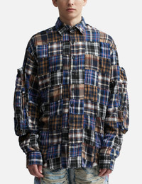- Who Decides War - Multi-Plaid Pocket Flannel - Long sleeves - Slightly oversized - Multi-plaid throughout - Front button closure - Stained glass cargo pockets - Buttoned cuffs - Curved hem - Color: Multi - Material: 100% cotton - See more Shirts and Clothing SIZING - Model wears size M - Model measures: Height 187cm, Chest 36”/91cm, Waist 28”/72cm, Hip 36”/91cm