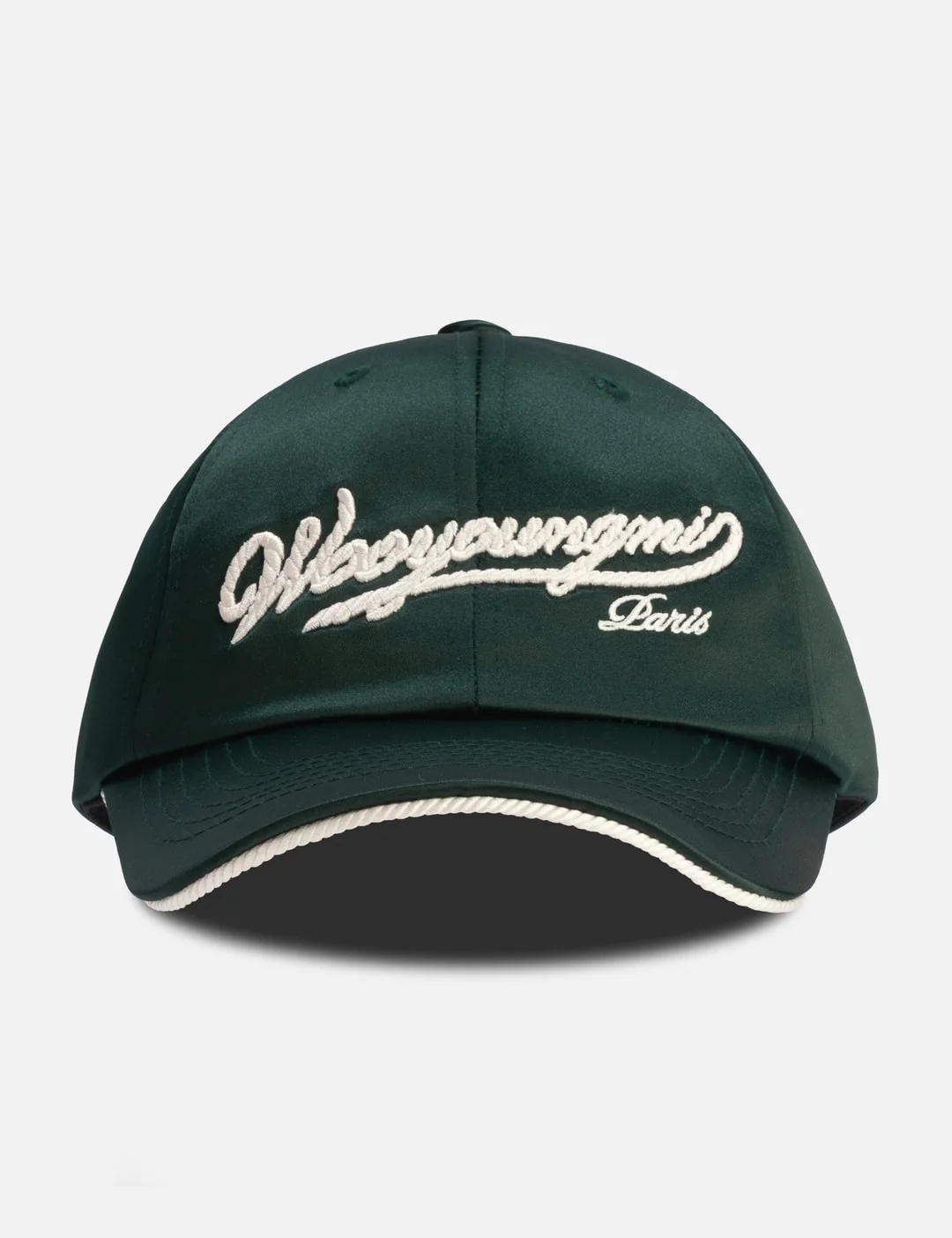 - Wooyoungmi - Script Logo Poly Cap - Made of polyester - Six-panel construction - Curved brim with pipping detail - Embroidered script logo on the front - Embroidered logo at the back - Adjustable buckle strap - Made in Korea - Color: Fresh Green - Material: 100% Polyester - See more Caps, Hats and Accessories - Brim Width: 7cm - Crown Height: 12cm - Circumference: 60cm - Vendor Code: W261CA53