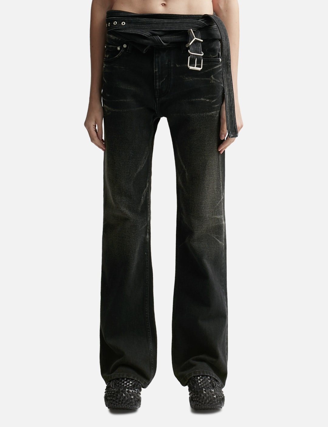 - Y/PROJECT - Wrap Belt Jeans - Fitted - Low waisted - Two extended panels wrap around the waist - Y belt hardware - Zip fly - 5-pocket - Color: Faded Black - Country Of Origin: FR - Material: 100% Cotton - See more Jeans and Clothing SIZING - Model wears size 26 - Model measures: Height 179cm, Chest 32”/81cm, Waist 23’’/58.42cm, Hip 35’’/88.9cm