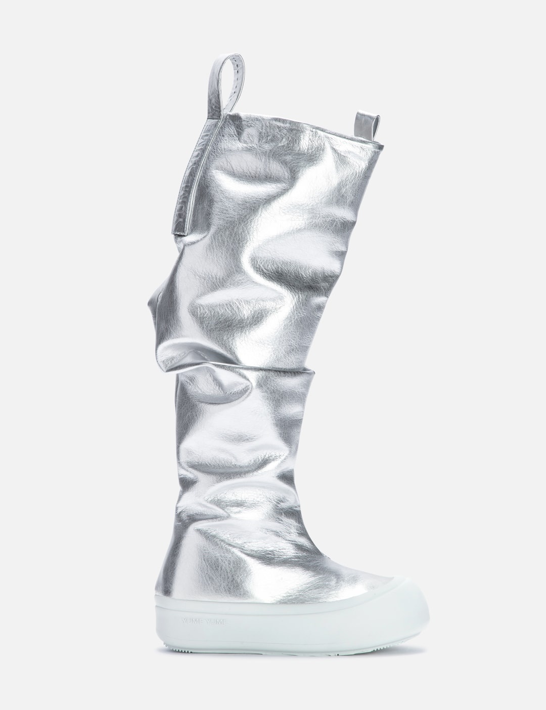 - Yume Yume - Fisherman Boot - Vegan leather upper - Wide fit - Round toe - Wrinkled effect - Front and rear pull-tabs - Logo embossed on pull-tabs - Rubber outsole with 70% recycled rubber - Color: Metallic - Material: Polystyrene, Aliphatic Resin, Rubber - See more Boots and Shoes