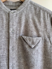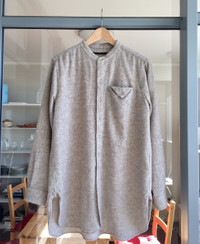My Beautiful Landlet long shirt (kurta) from F/W 2015. Tagged size 2, fits a true medium. Made in Japan. Pit to pit: 55 cm Length: 85 cm Sleeve length: 63 cm Shoulder: 45 cm Single button cuff, mandarin collar, chest pocket detail, back pleat. elongated hems at the back and side slits (shown on first pic). Works as either a thick shirt or over shirt. Lookbook image shows exact item in a different colour Prices cover Australia wide shipping, international please send me an offer to receive a quote. Price of the item itself is firm, but I'm willing to negotiate shipping.