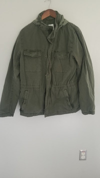 Only tried on Tag says small but fits like a meduim Hood can be put away