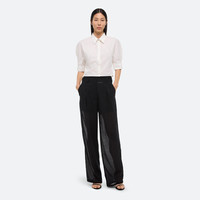 Cotton poplin shirt with exaggerated sleeves. Inspired by vintage parachute designs, with articulated seams that create a rounded shoulder and a fitted waist. Fits true to size. Model is 5’11” and wears size S. DETAILS - Pointed collar - Elbow-length sleeves - Cropped length - Hidden button front closure - Metal-wrapped logo buttons - Tonal rubber logo patch at back - P01HW504 MATERIALS & CARE - Composition: 100% cotton - Professional dry clean only - Finished Garment Manufacturing Country/Region: China - Fabric Production Country/Region: Japan - Weaving Country/Region: (of fabric) Japan - Dyeing Country/Region: (of fabric) Japan - Finishing Country/Region: (of fabric) Japan