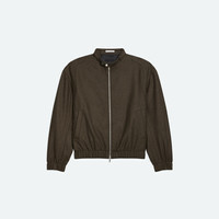 Lightweight bomber jacket in wool flannel with a reinforced shoulder. Fits true to size. Model is 6'2" and wears size M. DETAILS - Stand collar with adjustable snap closure - 2-way front zipper closure - Elasticized hem and cuffs - Welt pockets at sides - Interior welt pocket - Leather logo patch on back - Relaxed fit - Fully lined - P10HM101 MATERIALS & CARE - Composition: 70% wool, 30% polyamide; lining: 100% polyester - Professional dry clean only. - Finished Garment Manufacturing Country/Region: Vietnam - Fabric Production Country/Region: Italy - Weaving Country/Region: (of fabric) Italy - Dyeing Country/Region: (of fabric) Italy - Finishing Country/Region: (of fabric) Italy