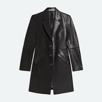 Tailored coat in leather and suede, sculpted by seams that wrap around the body for a slight A-line fit. Matches the Bisected Leather Pants. Fits true to size. Model is 5'10" and wears size S. DETAILS - Nappa leather - Notched lapels - Sculpted body with close fit - Button front closure - Front welt pocket - In-seam waist flap pockets - Fully lined - P07HW403 MATERIALS & CARE - Composition: 100% lamb leather; lining: 100% viscose - Professional leather clean only. - Finished Garment Manufacturing Country/Region: India - Fabric Production Country/Region: India