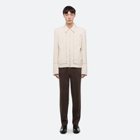 Tailored zip jacket in slub linen blend. Open ladder-stitch detail throught the body. Matches the Border Carpenter Trousers. Fits true to size. Model is 6’2” and wears size M. DETAILS - Open-weave fagoting detail throughout - Pointed collar - 2-way zip front closure - On-seam pockets - Front welt pocket with metal logo clip - Invisible zipper opening at cuffs - Relaxed fit - Fully lined - P04HM102 MATERIALS & CARE - Composition: 100% viscose - Professional dry clean only. - Finished Garment Manufacturing Country/Region: China - Fabric Production Country/Region: Italy - Weaving Country/Region: (of fabric) Italy - Dyeing Country/Region: (of fabric) Italy - Finishing Country/Region: (of fabric) Italy
