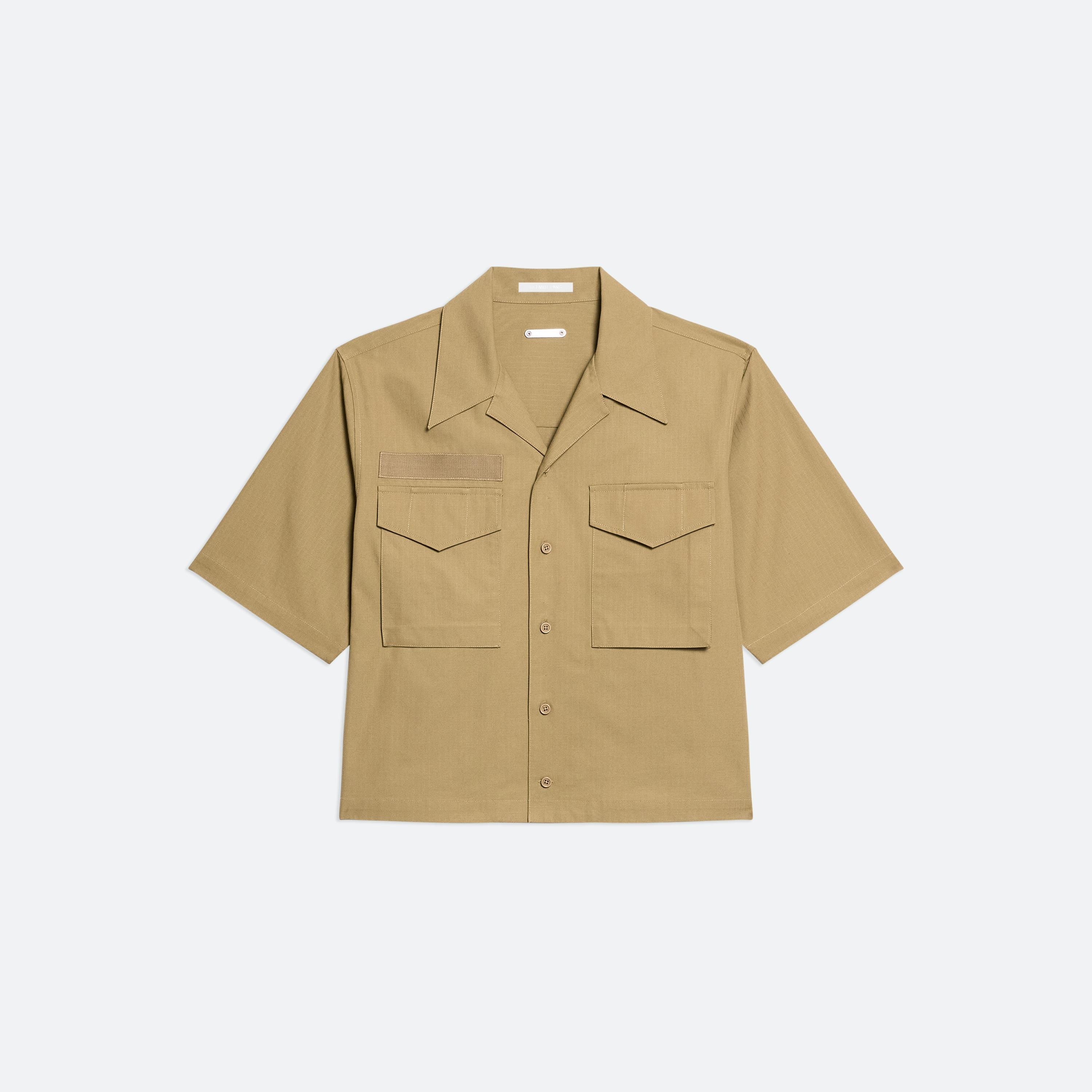 Short-sleeved utility shirt in ripstop cotton, inspired by military uniforms. Matches the Field Carpenter Pants. Fits true to size. Model is 6’1” and wears size M. DETAILS - Convertible collar - Button-front closure - Flap chest pockets - Grosgrain tape detail at chest - Side vents - Metal logo plate at back - P01HM504 MATERIALS & CARE - Composition: 100% cotton - Professional dry clean only - Finished Garment Manufacturing Country/Region: China - Fabric Production Country/Region: Japan - Weaving Country/Region: (of fabric) Japan - Dyeing Country/Region: (of fabric) Japan - Finishing Country/Region: (of fabric) Japan