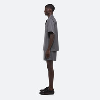 Short-sleeved utility shirt in virgin Italian wool suiting, inspired by military uniforms. Matches the Pull-On Car Shorts. Fits true to size. Model is 6’1” and wears size M. DETAILS - Convertible collar - Button-front closure - Chest pocket with metal logo clip - Side vents - Metal-wrapped logo buttons - P02HM503 MATERIALS & CARE - Composition: 100% virgin wool - Professional dry clean only, do not steam - Finished Garment Manufacturing Country/Region: Vietnam - Fabric Production Country/Region: Italy - Weaving Country/Region: (of fabric) Italy - Dyeing Country/Region: (of fabric) Italy - Finishing Country/Region: (of fabric) Italy