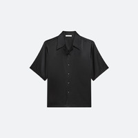 Boxy short-sleeved shirt in lightweight silk charmeuse. Fits true to size. Model is 6’3” and wears size M. DETAILS - Camp collar - Button-front closure - Side vents - Metal-wrapped logo buttons - Relaxed fit - P04HM506 MATERIALS & CARE - Composition: 100% silk - Do not wash. Do not bleach. Do not tumble dry. Cool iron if needed. Dry clean with any solvent except trichloroethylene. - Finished Garment Manufacturing Country/Region: China - Fabric Production Country/Region: China - Weaving Country/Region: (of fabric) China - Dyeing Country/Region: (of fabric) China - Finishing Country/Region: (of fabric) China
