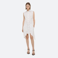 Stretch poplin shirt dress inspired by vintage parachute designs. Sculpted by darts and articulated seams for a tailored bodice with a fuller skirt. Fits true to size. Model is 5’10” and wears size 2. DETAILS - Pointed collar - Sleeveless - Button front closure and cuffs - Asymmetrical handkerchief hem - In-seam pockets - Metal-wrapped logo buttons - P01HW602 MATERIALS & CARE - Composition: 78% cotton, 19% nylon, 3% spandex - Machine wash cold, gentle cycle, with similar colors, do not bleach, tumble dry low delicate cycle, cool iron if needed, dry clean with any solvent except trichloroethylene - Finished Garment Manufacturing Country/Region: China - Fabric Production Country/Region: Korea (South) - Weaving Country/Region: (of fabric) Korea (South) - Dyeing Country/Region: (of fabric) Korea (South) - Finishing Country/Region: (of fabric) Korea (South)
