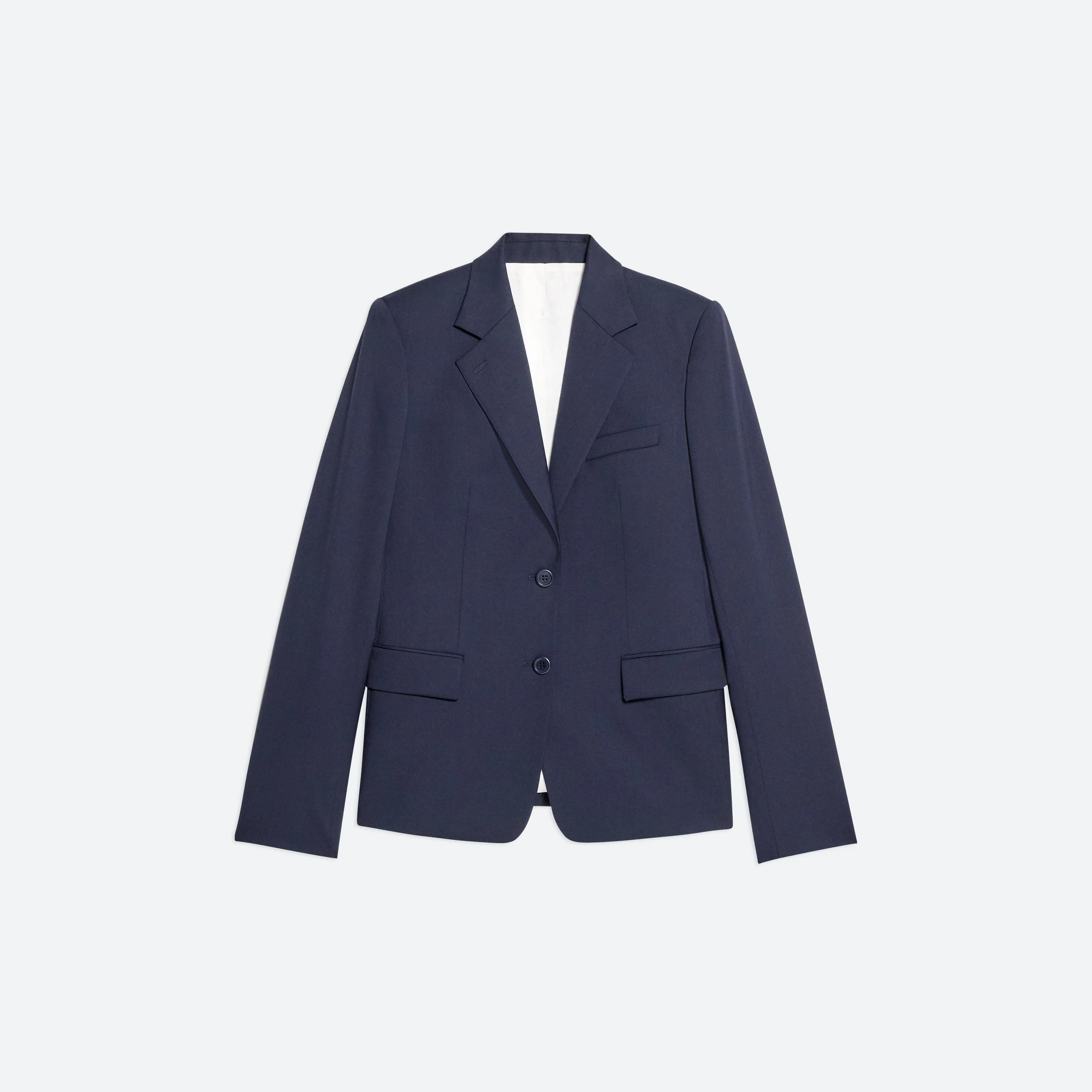 Classic tailored blazer in virgin Italian wool with notched lapels and waist flap pockets. Fits true to size. Model is 5’11” and is wearing size 2 DETAILS - Notched lapels - Button front closure - Waist flap pockets - Fully lined - Relaxed fit - O01HW104 MATERIALS & CARE - Composition: 100% Virgin Wool - Professional dry clean only. Do not steam. - Finished Garment Manufacturing Country/Region: China - Fabric Production Country/Region: Italy - Weaving Country/Region: (of fabric) Italy - Dyeing Country/Region: (of fabric) Italy - Finishing Country/Region: (of fabric) Italy