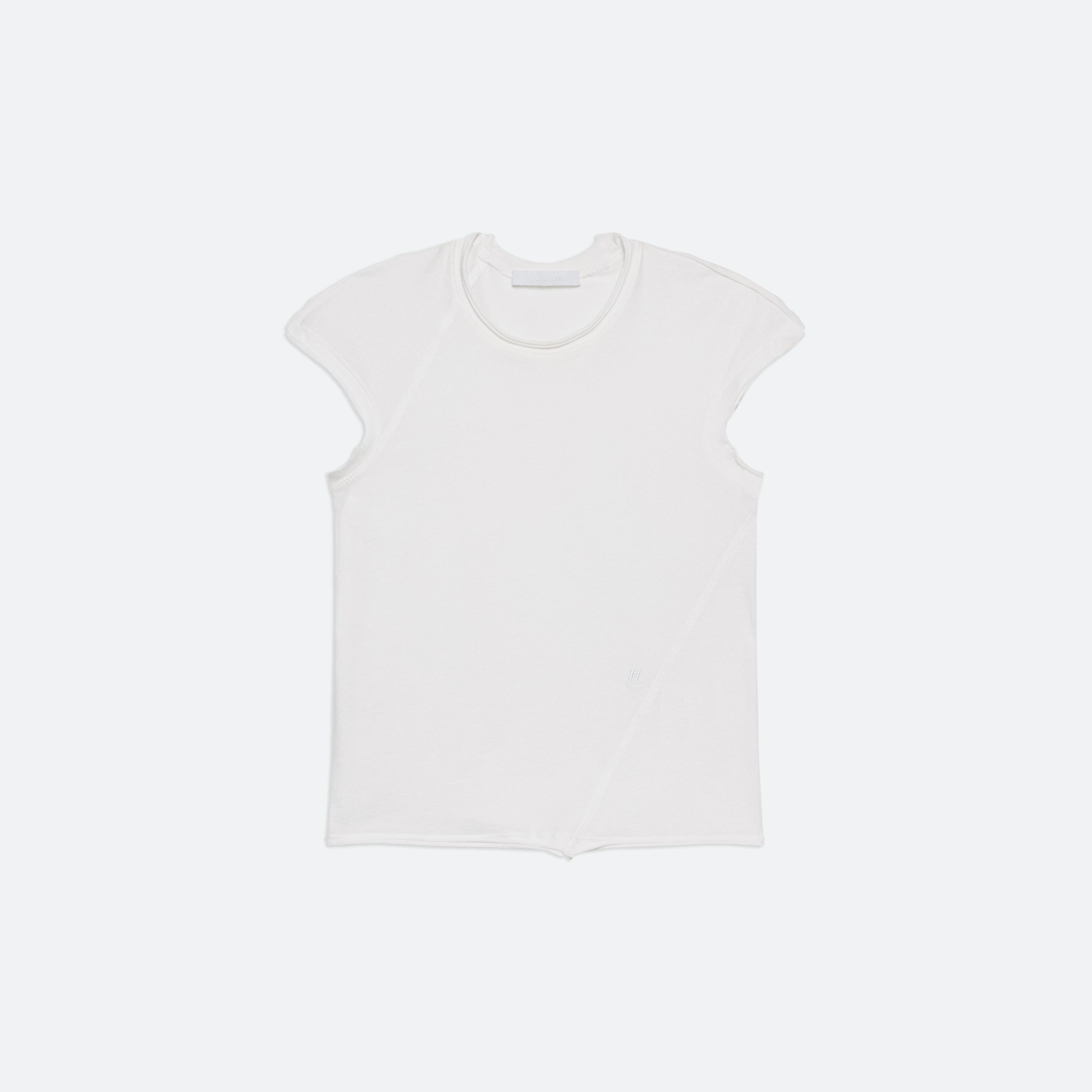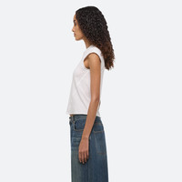 Cropped baby tee in featherweight jersey. Seams wrap around the body for a close fit. Fits true to size. Model is 5’10” and wears size S. DETAILS - Crewneck - Cap sleeves - Tonal logo embroidery at front - Double-rolled hem at neck and arms - P05HW504 MATERIALS & CARE - Composition: 92% Pima cotton, 8% spandex - Machine wash cold gentle cycle, with like colors. Do not bleach. Tumble dry low. Cool iron if needed. Do not dry clean. - Finished Garment Manufacturing Country/Region: Peru - Fabric Production Country/Region: Peru - Weaving Country/Region: (of fabric) Peru - Dyeing Country/Region: (of fabric) Peru - Finishing Country/Region: (of fabric) Peru