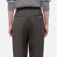 Cropped trousers in soft wool twill. Front pleats and a relaxed rise create a fuller leg that tapers at the ankle for a slight carrot shape. Fits true to size. Model is 6’2” and wears size 32 DETAILS - Belt loops - Pleats at front - Zip fly with hook and bar closure - Side slip pockets - Back welt pockets with metal logo clip - Slight cropped length - Relaxed fit with high rise - Half lined - O07HM202 MATERIALS & CARE - Composition: 70% Wool, 30% Polyamide - Finished Garment Manufacturing Country/Region: China - Fabric Production Country/Region: Italy - Weaving Country/Region: (of fabric) Italy - Dyeing Country/Region: (of fabric) Italy - Finishing Country/Region: (of fabric) Italy
