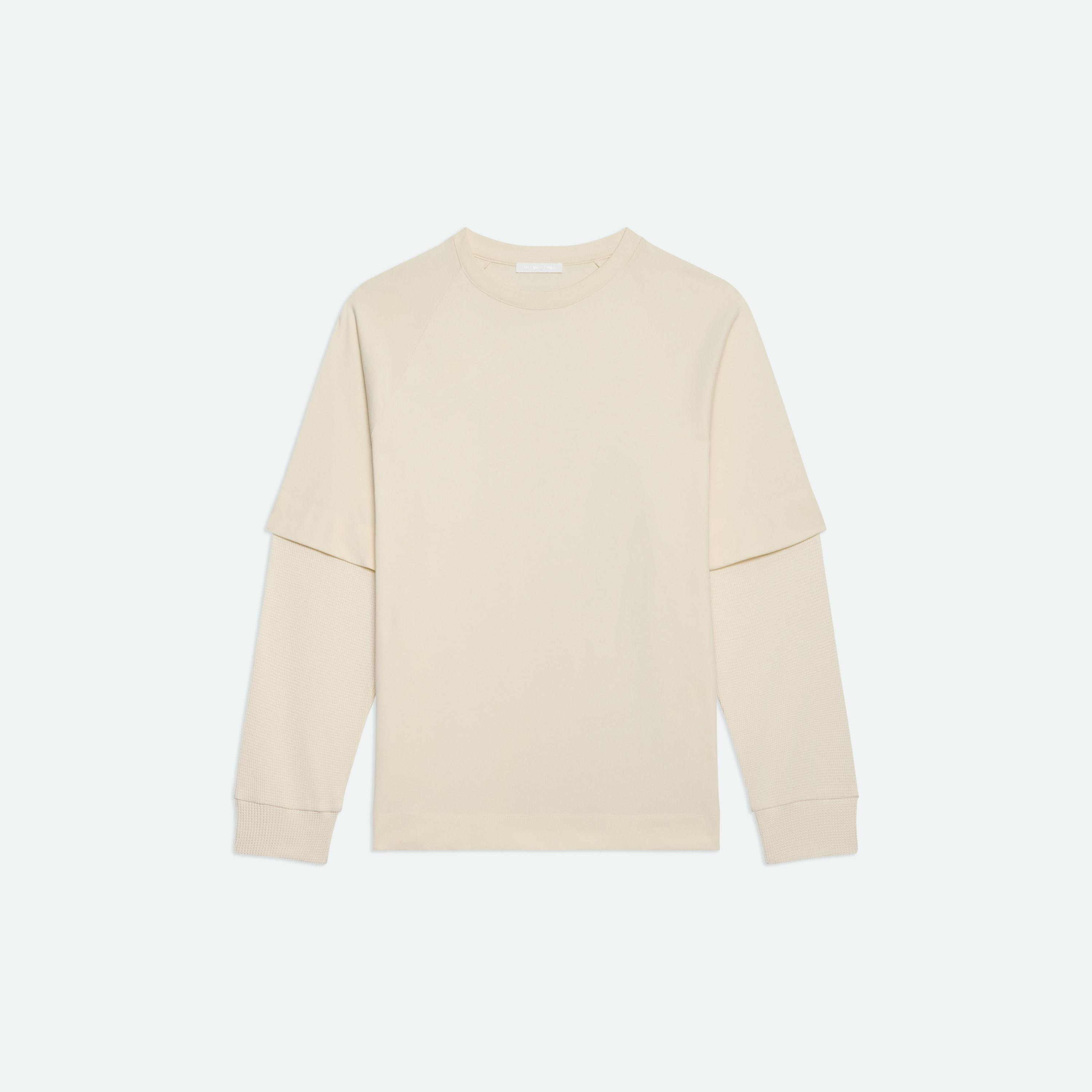 Long-sleeved crewneck with layered sleeves in a contrasting waffle knit. Fits true to size. Model is 6'2" and wears size M. DETAILS - Crewneck - Long sleeves with layered effect - Tonal leather logo patch on back - Slightly relaxed fit - P09HM501 MATERIALS & CARE - Composition: 100% cotton - Machine wash cold, inside-out, with like colors. Do not bleach. Do not tumble dry. Cool iron if needed. Do not dry clean. Lay flat to dry. - Fabric Production Country/Region: Portugal - Weaving Country/Region: (of fabric) Portugal - Dyeing Country/Region: (of fabric) Portugal - Finishing Country/Region: (of fabric) Portugal
