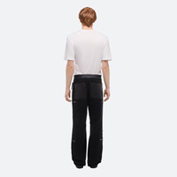 Mid-rise trousers in brushed cotton chamois with leather accents. Inspired by the tactical details of aviation flight suits, with articulated knees and zip pockets throughout. Cinch the bungee cords at the ankle for a parachute fit. Matches the Hunting Jacket. Fits true to size. Model is 6'1” and wears size 32. DETAILS - Mid-rise - Straight leg - Zip fly with button closure - Articulated leather knee patch - Leather waistband and belt loops - Side pockets with zipper pull - Back patch pockets - Zippered pockets throughout - Bungee cord ankle closures - Hidden elastic waistband at back - 31” inseam and 21” leg opening - O10HM206 MATERIALS & CARE - Composition: 98% Organic Cotton, 2% Spandex - Professional dry clean only. - Finished Garment Manufacturing Country/Region: China - Fabric Production Country/Region: China - Weaving Country/Region: (of fabric) China - Dyeing Country/Region: (of fabric) China - Finishing Country/Region: (of fabric) China